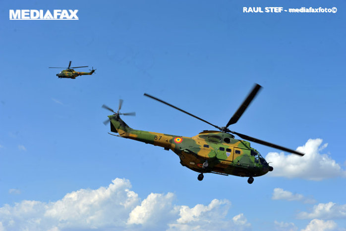 Un elicopter IAR 330 Puma, din dotarea Forţelor Aeriene Române, execută sâmbătă, o misiune de căutare pe mare a posibililor supravieţuitori ai echipajului navei scufundate, sâmbătă dimineaţă, în Marea Neagră.