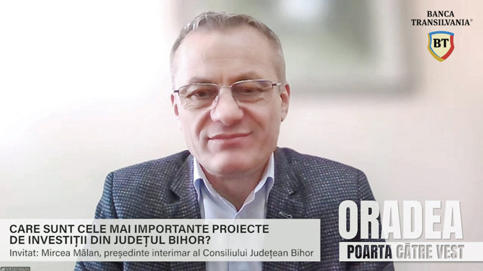 Oradea, poartă către Vest, un proiect ZF susţinut de Banca Transilvania. Mircea Mălan, Consiliul Judeţean Bihor: Avem în implementare un proiect de infrastructură „tram-train“ de 274 mil. euro, prin care legăm Oradea de zonele limitrofe