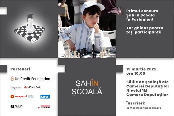 Deputaţilor - Nivelul 1M, vor găzdui un eveniment de o importanţă deosebită pentru viitorul educaţiei din România: primul concurs de şah organizat de Şah în Şcoală în incinta Parlamentului ca parte a unui întreg proiectul national.