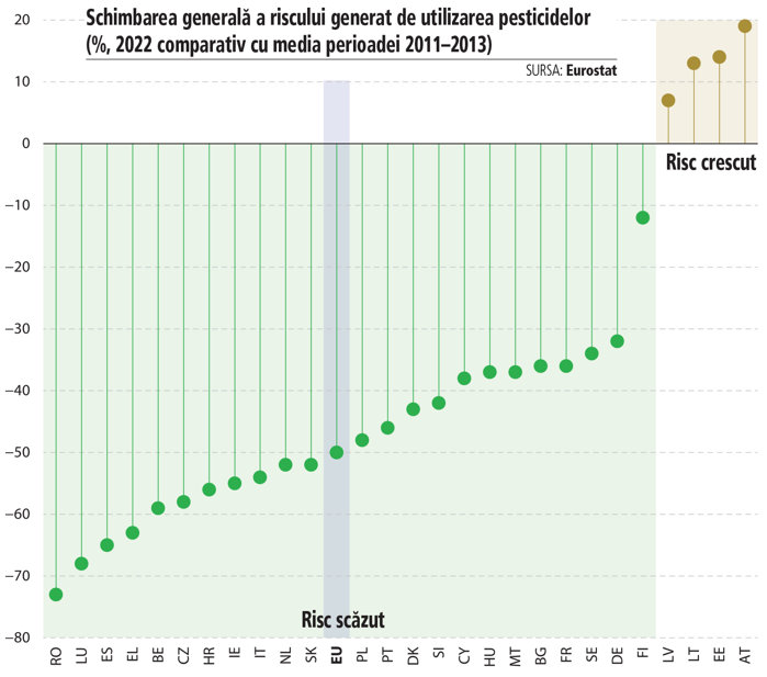 Pagina verde. România a redus riscul asociat pesticidelor cu 60% în zece ani, cea mai mare scădere din UE