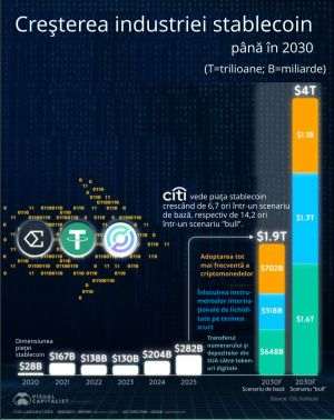 Monedele stabile (stablecoins) s-au transformat rapid din active cripto de nisa intr-unul dintre segmentele cu cea mai rapida crestere din domeniul financiar, conform unei analize visualcapitalist.com, care mentioneaza ca promisiunea lor de stabilitate a preturilor, combinata cu eficienta blockchain-ului, a atras atat utilizatori individuali, cat si institutionali, ducand dimensiunea pietei de pro...