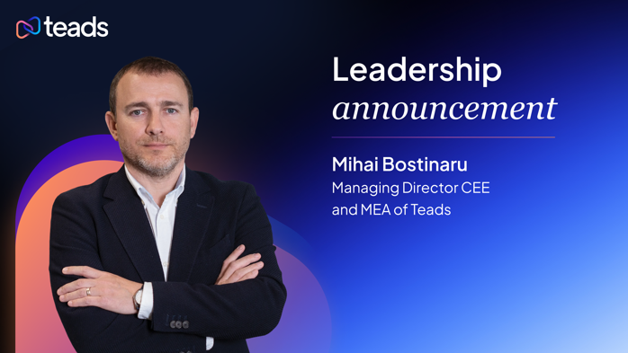 Teads, platforma globală de omnichannel advertising, anunţă numirea lui Mihai Boştinaru în funcţia de Managing Director CEE & MEA (Europa Centrală şi de Est şi Orientul Mijlociu & Africa).