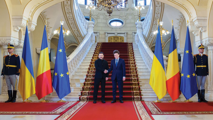 Preşedinţii României şi Ucrainei, Nicuşor Dan şi Volodimir Zelenski,  au semnat ieri la Bucureşti „parteneriatul strategic“ între cele două ţări. Ucraina a intrat acum o lună în cel de-al cincilea an de război cu Rusia.