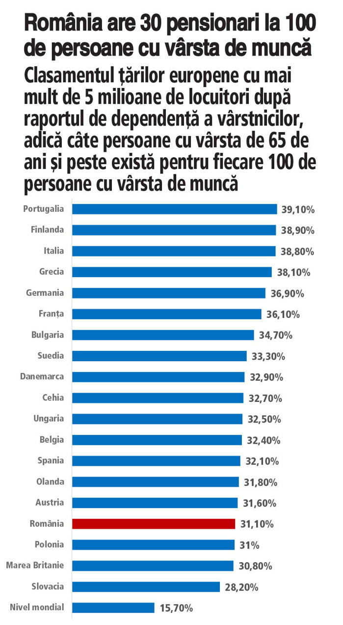♦ Întreaga regiune se confruntă cu o îmbătrânire a populaţiei, conform datelor de la Banca Mondială.