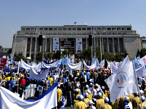 Profesorii s-au strâns în faţa sediului Guvernului. Mii de sindicalişti din învăţământ participă luni, de la ora 11.00, la protestul din Capitală, nemulţumiţi de măsurile fiscal-bugetare luate de Guvern în acest domeniu.