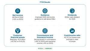 Intesa Sanpaolo Group a inregistrat cele mai bune rezultate financiare din istoria sa, incheind anul 2024 cu un profit net de 8,7 miliarde EUR, in crestere cu 12% fata de 2023, potrivit unui comunicat emis redactiei. Aceasta performanta remarcabila permite bancii sa distribuie actionarilor dividende in numerar in valoare de 6,1 miliarde EUR pentru 2024. In plus, sub rezerva aprobarii actionarilor,...