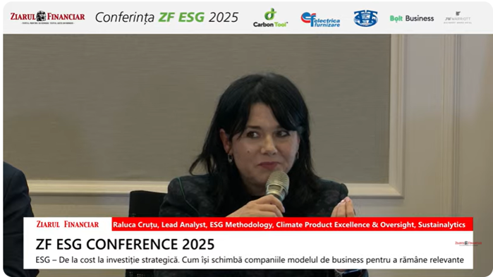 Investiţiile pentru aplicarea ESG implică o serie de costuri pentru companii, de achiziţionare de software, de training, de know-how, dar pe termen mediu şi lung rezultatele se vor vedea prin obţinerea acelui avantaj competitiv, a declarat Raluca Cruţu, Lead Analyst, ESG Methodology, Climate Product Excellence and Oversight, Sustainalytics în cadrul conferinţei  ZF ESG CONFERENCE 2025. ”Cred că firmele trebuie să se poziţioneze un pic mai departe de conceptul de ESG, să treacă în zona de aplicabilitate. Există provocări, pentru că trebuie investiţii şi acestea implică costuri de achiziţionare, de software, de training-uri, de know-how. Aceste costuri sunt pe termen scurt, pentru că pe termen mediu şi lung cred că se va vedea rezultatul prin obţinerea acelui avantaj competitiv, inclusiv pentru firmele din România”.