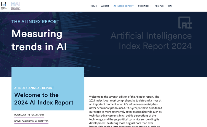 Indexul AI, un raport independent realizat de Institutul Stanford pentru inteligenţă artificială centrată pe om (HAI), arată că inteligenţa artificială este încă departe de a întrece oamenii la rezolvarea sarcinilor complexe dar şi că SUA domină autoritar noua industrie.