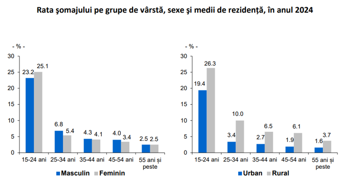 România avea la final de 2024 o populaţie cu vârstă de muncă de 8,3 milioane persoane. Rata şomajului a fost de 5,4% la nivel naţional, dar de 24% în rândul tinerilor până în 24 de ani