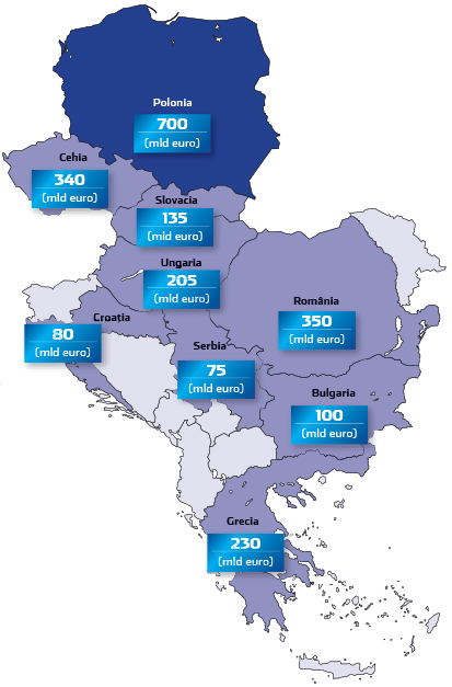 România devine o forţă economică în Balcani şi în regiune. Economia României va ajunge în 2024 la 350 mld. euro şi este deja pe locul al doilea în Balcani şi în regiune, după Polonia, dar în faţa Greciei şi Cehiei