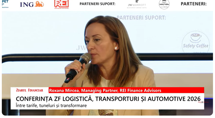 Piaţa are apetit pentru a diversifica business-urile, companiile vor să facă staţii de incărcare, iar trendul de creştere pe zona de maşini electrice continuă, a declarat Roxana Mircea, managing partner, REI Finance Advisors în cadrul conferinţei ZF Logistică, Transporturi şi Automotive 2026. ”Aşteptăm nişte scheme de la Ministerul Transporturilor pentru vehicule electrice. Piaţa are apetit pentru a diversifica business-urile, pentru a face staţii de încărcare. Avem 250 mil euro pe fiecare axă şi vom vedea 2 ani cu multă electrificare în România. Trendul de creştere pe maşini electrice continuă şi are sens să iti pui panouri fotovoltaice, staţii de încărcare”. În acelaşi timp, ea spune că transportatorii se confruntă cu dificultăţi legate de bugete. ”Asteptăm şi 5 mld euro de la Finanţe, să vedem pe ce se duc banii pe zona de relansare. Dar e nevoie şi de scheme mici pentru a creşte 600.000 de companii care se chinuie la 100.000 euro cifră de afaceri”. Ce a mai declarat Roxana Mircea,:
