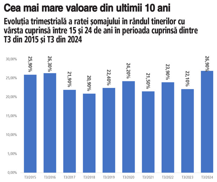 Semnal de alarmă: rata şomajului în rândul tinerilor atinge cel mai înalt nivel din ultimul deceniu. Şomajul ridicat în rândul tinerilor poate duce la pierderi economice, migrarea tinerilor şi amplificarea inegalităţilor sociale