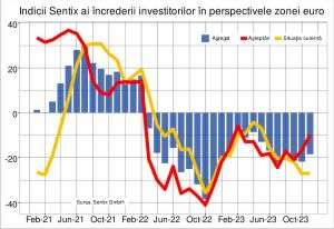 Increderea investitorilor privind activitatea economica din zona euro a crescut peste asteptari in noiembrie 2023, conform ultimului raport de la Sentix GmbH