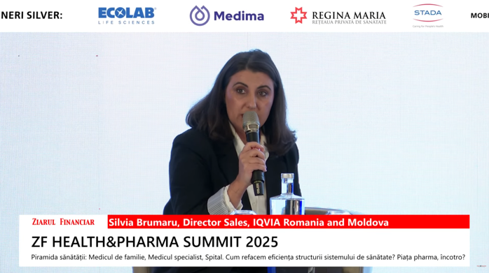 În Europa de Est, România are a doua cea mai mare piaţă farmaceutică, Polonia. În ultimii ani, piaţa farmaceutică din România a avut evoluţii de peste 15% şi până în 2028, estimările spun că rata de creştere va încetini, iar România creştere va avea o creştere de 8%, potrivit Silviei Brumaru, Director Sales în cadrul IQVIA Romania & Moldova, prezentă la ZF Health&Pharma Summit 2025 „Piramida sănătăţii: Medicul de familie, Medicul specialist, Spital. Cum refacem eficienţa structurii sistemului de sănătate? Piaţa pharma, încotro?”.