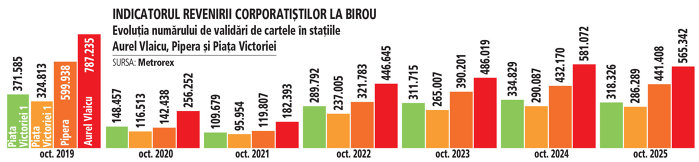 Staţiile de metrou ale corporatiştilor Aurel Vlaicu şi Pipera sunt la 70% faţă de vârful din 2019