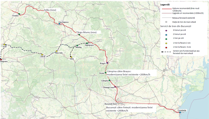 Un studiu strategic privind calea ferată de mare viteză, realizat de compania de consultanţă Atkins Realis pentru Direcţia Generală Programe Europene Transport (DGPET) din cadrul Ministerului Transporturilor, arată că ruta care s-ar plia cel mai bine pentru trenuri ce pot ajunge la 250 km pe oră este Constanţa-Oradea.