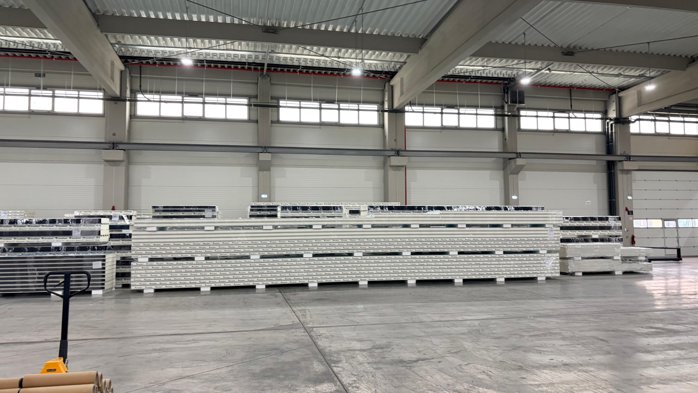 TeraSteel, unul dintre primii trei producători de panouri sandwich din România şi parte a Grupului Kingspan, lider mondial în soluţii de izolare, a inaugurat sâmbătă, 28 februarie, cea de-a patra fabrică a sa, la Lehliu-Gară, judeţul Călăraşi. Investiţia depăşeşte 20 de milioane de euro, dintre care 8 milioane de euro reprezintă ajutor de stat, şi aduce cea mai modernă infrastructură de producţie a companiei de până acum. Noua fabrică, construită pe o suprafaţă de 55.000 mp, adaugă o capacitate anuală de 1,8 milioane mp de panouri termoizolante şi găzduieşte cea mai lungă linie de producţie din Sud-Estul Europei – 260 de metri liniari, dublu faţă de linia de la Bistriţa. De ce Lehliu-Gară „Constanţa cu Bucureştiul reprezintă 40% din piaţa de construcţii din România. Să fii cumva la mijloc e un mare avantaj. Apoi, portul Constanţa – expunerea la portul Constanţa pentru materia primă este foarte importantă. Accesul de aici spre Moldova românească, spre Republica Moldova, spre Bulgaria – sunt foarte facili", explică Cosmin Pătroiu, CEO TeraSteel. Compania a evaluat 4-5 locaţii şi a ales Lehliu-Gară pentru poziţionarea strategică: la 64 de km de Bucureşti pe A2, la intersecţia dintre autostrăzi şi drumuri naţionale, cu acces rapid spre Constanţa, Piteşti, Craiova şi Moldova. TeraSteel ajunsese cu cele două fabrici din România la capacitate maximă de trei ani şi avea nevoie de o unitate în sudul ţării. Panouri româneşti pe trei continente Ambiţia principală este exportul de panouri cu vată minerală prin Portul Constanţa. „Haiţi să vedem companii româneşti care exportă în Turcia. Noi tot timpul importăm din Turcia. Avem curajul să mergem în Turcia, în Kazahstan, Azerbaidjan, Dubai, Emiratele Arabe Unite. Portul Constanţa este al doilea port din Europa, după Rotterdam, şi nu îl valorificăm. Why not?", a spus Cosmin Pătroiu în discursul de la inaugurare. De aici vor pleca soluţii constructive spre Ucraina, Bulgaria, Republica Moldova, dar şi spre Arabia Saudită şi Emiratele Arabe, prin intermediul infrastructurii internaţionale a Grupului Kingspan, care a achiziţionat TeraSteel în 2021. "Ferrari-ul" de la Lehliu-Gară Turul fabricii dezvăluie o linie combinată (PUR/PIR Ă vată minerală) cu patru derulatoare de tablă pentru producţie continuă, un trăgător dublu de 42 de metri – cel mai lung din România – şi o viteză de producţie cu 25% mai mare decât la Bistriţa. „Acuma e Ferrari", spune Cosmin Pătroiu. Fabrica poate produce panouri de până la 19,5 metri lungime, un avantaj la clădirile industriale mari. Pe acoperiş, 1.300 de panouri fotovoltaice cu o capacitate de 550 kW, instalate de TeraPlast. David Kasik, Managing Director Kingspan CEME, a povestit cum s-a născut investiţia: „Într-o zi, Cosmin a venit şi a spus: David, trebuie să ne extindem, trebuie să servim clienţii mai bine. A pregătit un business plan fantastic, l-a prezentat proprietarului nostru, Gene Murtagh, care l-a aprobat imediat." 90 de milioane de euro şi apetit pentru mai mult Fabrica a creat 61 de locuri de muncă. La nivel de grup, TeraSteel are peste 230 de angajaţi, patru fabrici (Sărăţel, Bistriţa, Leskovac – Serbia şi Lehliu-Gară), o capacitate totală de peste 6 milioane mp de panouri sandwich anual şi exportă peste 50% din producţie în 25 de ţări, cu peste 800 de parteneri B2B. Cifra de afaceri a ajuns la 90 de milioane de euro în 2025, iar Radu Moldovan, preşedintele CJ Bistriţa-Năsăud, judeţul de unde a pornit povestea TeraSteel, le-a lansat o provocare: „Hai să nu facem un target foarte greu, la 150, dar la 115-125, Doamne ajută!"