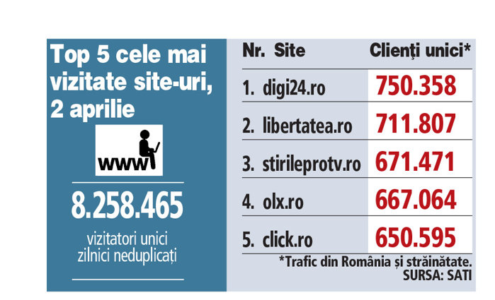 Top 5 cele mai vizitate site-uri, 2 aprilie 2024