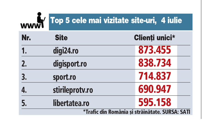 Top 5 cele mai vizitate site-uri, 4 iulie 2024