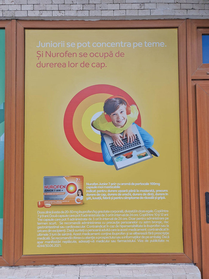 Unde se opreşte „creativitatea“ din industria farma? Nurofen ne informează că „juniorii se pot concentra pe teme. Medicamentul se ocupă de durerea lor de cap“. Profesoară: „Este inadecvată“