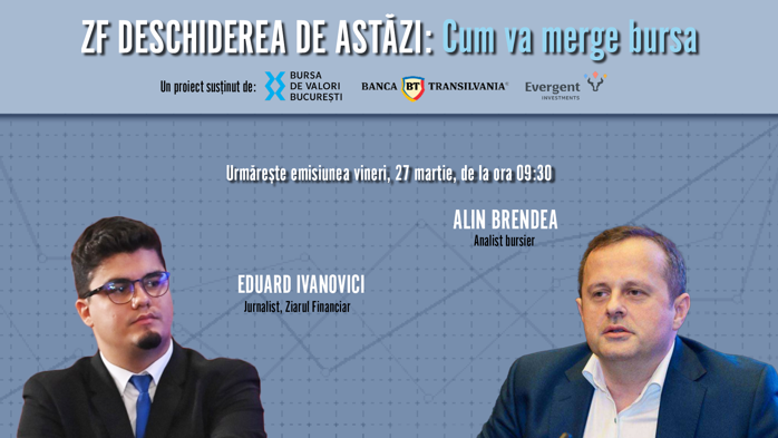 Urmăriţi emisiunea ZF Deschiderea de Astăzi, 27 martie. Alin Brendea, analist bursier: „Piaţa locală dă în continuare dovadă de o rezilienţă ridicată la factorii externi”