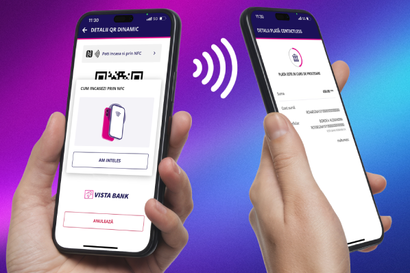 Vista Bank extinde funcţionalităţile sistemului RoPay, dezvoltat de TRANSFOND, şi devine prima bancă din România care introduce plăţile instant contactless între persoane fizice. Noul serviciu permite transferuri instant în lei între două persoane aflate în proximitate, direct din Mobile Banking, prin simpla apropiere a telefoanelor mobile.