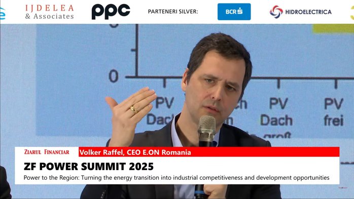 Autorităţile din România pot crea un cadru prin care să încurajeze companiile de energie să vină cu investiţii suplimentare de 1 miliard de euro pe an în reţelele de transport şi distribuţie, ceea ce ar genera un impact pozitiv direct şi indirect de 10 miliarde de euro pe an, a explicat Volker Raffel, CEO E.ON România, în conferinţa ZF Power Summit 2024.