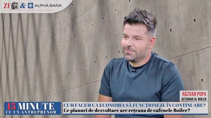 ZF 15 minute cu un antreprenor, un proiect Ziarul Financiar şi Alpha Bank. Răzvan Popa, acţionar al lanţului de cafenele Boiler: Zilnic, avem 2.000 de clienţi care ne trec pragul. Postpandemie, oamenii nu mai vor să consume în mall