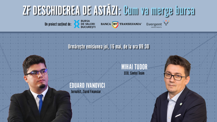 ZF DESCHIDEREA DE ASTĂZI. Cum va merge bursa. Urmăriţi joi, 16 mai 2024, ora 09.30 o discuţie cu Mihai Tudor, CEO Simtel Team