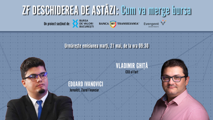 ZF DESCHIDEREA DE ASTĂZI. Cum va merge bursa. Urmăriţi marţi, 21 mai 2024, ora 09.30 o discuţie cu Vladimir Ghiţă, CEO al Fort
