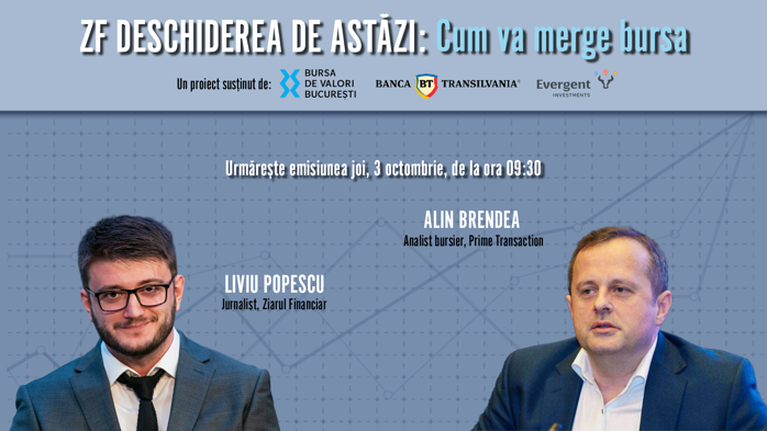ZF DESCHIDEREA DE ASTĂZI. Cum va merge bursa. Urmăriţi o discuţie cu ALIN BRENDEA, analist bursier, Prime Transaction