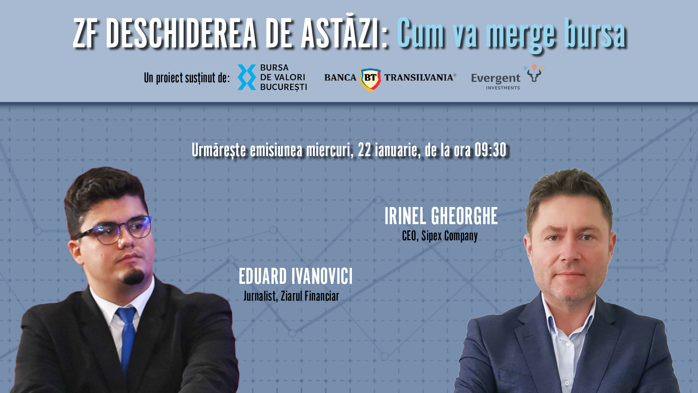 ZF DESCHIDEREA DE ASTĂZI. Cum va merge bursa. Urmăriţi o discuţie cu IRINEL GHEORGHE, CEO, Sipex Company