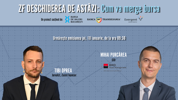 ZF DESCHIDEREA DE ASTĂZI. Cum va merge bursa. Urmăriţi o discuţie joi, 18 ianuarie 2024, ora 09.30 cu Mihai Purcărea, CEO BRD Asset Management