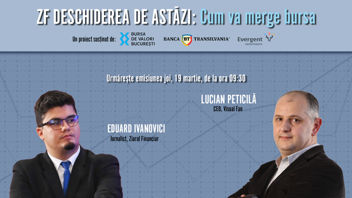 ZF DESCHIDEREA DE ASTĂZI. Cum va merge bursa. Urmăriţi o discuţie joi, 19 martie 2026, ora 09.30 cu LUCIAN PETICILĂ, CEO, Visual Fan