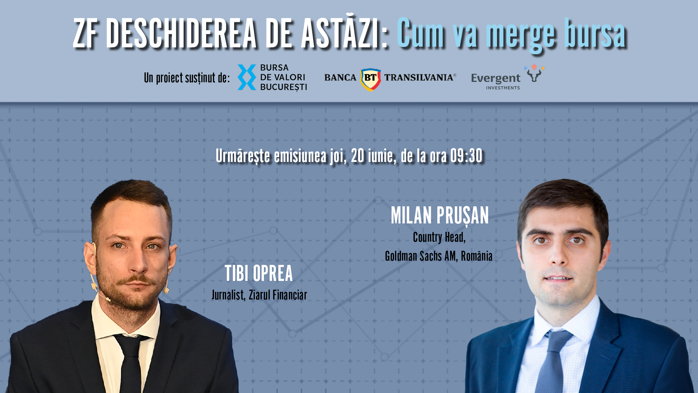 ZF DESCHIDEREA DE ASTĂZI. Cum va merge bursa. Urmăriţi o discuţie joi, 20 iunie 2024, ora 09.30 cu Milan Pruşan, Country Head, Goldman Sachs AM, România