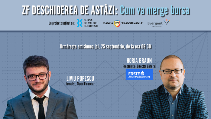 ZF DESCHIDEREA DE ASTĂZI. Cum va merge bursa. Urmăriţi o discuţie joi, 25 septembrie 2025, ora 09.30 cu Horia Braun, Preşedinte - Director General, Erste Asset Management