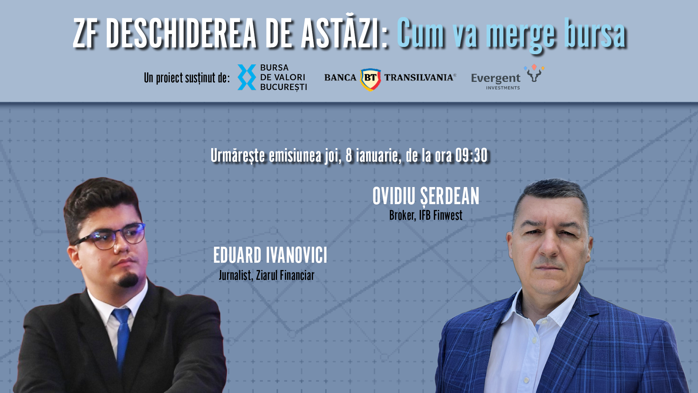 ZF DESCHIDEREA DE ASTĂZI. Cum va merge bursa. Urmăriţi o discuţie joi, 8 ianuarie 2026, ora 09.30 cu Ovidiu Şerdean, Broker, IFB FINWEST
