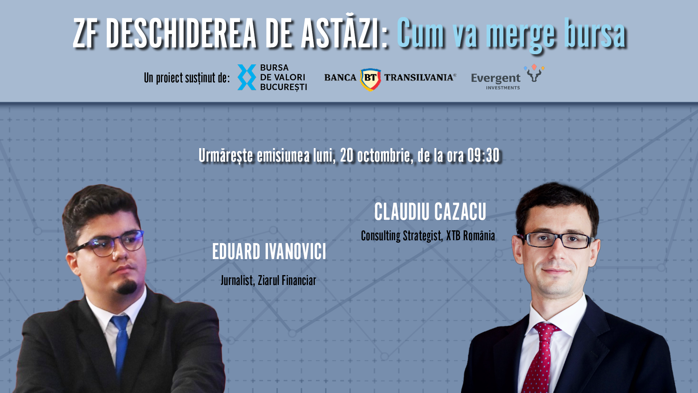 ZF DESCHIDEREA DE ASTĂZI. Cum va merge bursa. Urmăriţi o discuţie luni, 20 octombrie 2025, ora 09.30 cu Claudiu Cazacu, Consulting Strategist în cadrul XTB România