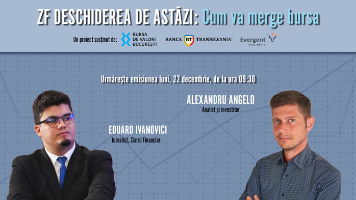ZF DESCHIDEREA DE ASTĂZI. Cum va merge bursa. Urmăriţi o discuţie luni, 22 decembrie 2025, ora 09.30 cu Alexandru Angelo, analist şi investitor