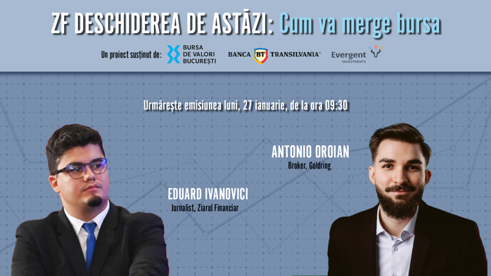 ZF DESCHIDEREA DE ASTĂZI. Cum va merge bursa. Urmăriţi o discuţie luni, 27 ianuarie 2025, ora 09.30 cu Antonio Oroian, broker al Goldring