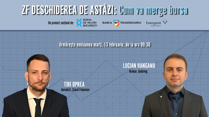 ZF DESCHIDEREA DE ASTĂZI. Cum va merge bursa. Urmăriţi o discuţie marţi, 13 februarie 2024, ora 09.30 cu LUCIAN HANGANU, broker, Goldring