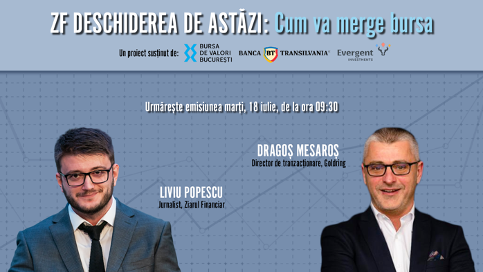 ZF DESCHIDEREA DE ASTĂZI. Cum va merge bursa. Urmăriţi o discuţie marţi, 18 iulie 2022, ora 09.30 cu Dragoş Mesaroş, director de tranzacţionare al Goldring