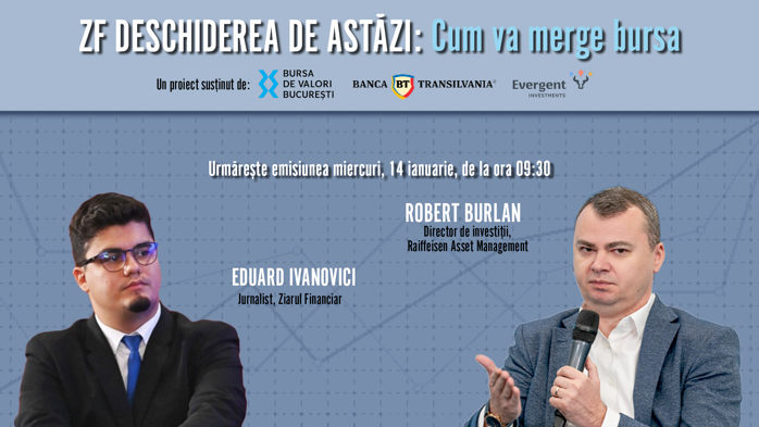 ZF DESCHIDEREA DE ASTĂZI. Cum va merge bursa. Urmăriţi o discuţie miercuri, 14 ianuarie 2026, ora 09.30 cu ​Robert Burlan, director de investiţii, Raiffeisen Asset Management