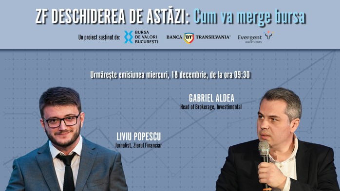 ZF DESCHIDEREA DE ASTĂZI. Cum va merge bursa. Urmăriţi o discuţie miercuri, 18 decembrie 2024, ora 09.30 cu Gabriel Aldea, Head of Brokerage, Investimental