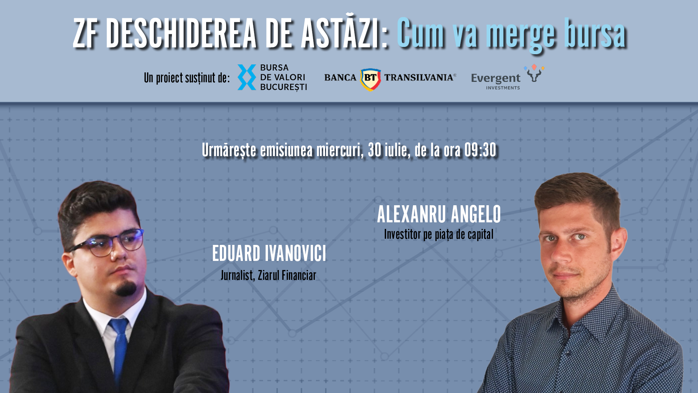 ZF DESCHIDEREA DE ASTĂZI. Cum va merge bursa. Urmăriţi o discuţie miercuri, 30 iulie 2025, ora 09.30 cu Alexandru Angelo, analist şi investitor