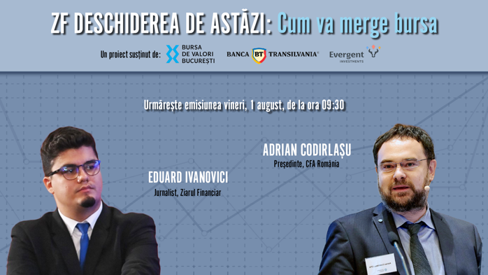 ZF DESCHIDEREA DE ASTĂZI. Cum va merge bursa. Urmăriţi o discuţie vineri, 1 august 2025, ora 09.30 cu Adrian Codirlaşu, preşedinte, CFA România