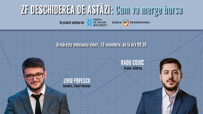 ZF DESCHIDEREA DE ASTĂZI. Cum va merge bursa. Urmăriţi o discuţie vineri, 10 septembrie 2023, ora 09:30 cu Radu Cojoc, broker al Goldring