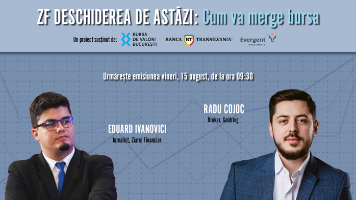 ZF DESCHIDEREA DE ASTĂZI. Cum va merge bursa. Urmăriţi o discuţie vineri, 15 august 2025, ora 09:30 cu Radu Cojoc, broker al Goldring