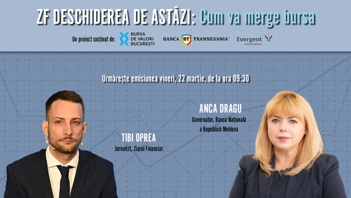 ZF DESCHIDEREA DE ASTĂZI. Cum va merge bursa. Urmăriţi o discuţie vineri, 22 martie 2024, ora 09.30 cu Anca Dragu, Guvernator, Banca Naţională a Republicii Moldova