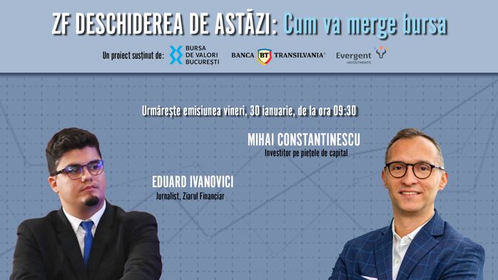 ZF DESCHIDEREA DE ASTĂZI. Cum va merge bursa. Urmăriţi o discuţie vineri, 30 ianuarie 2026, ora 09.30 cu Mihai Constantinescu, investitor pe pieţele de capital
